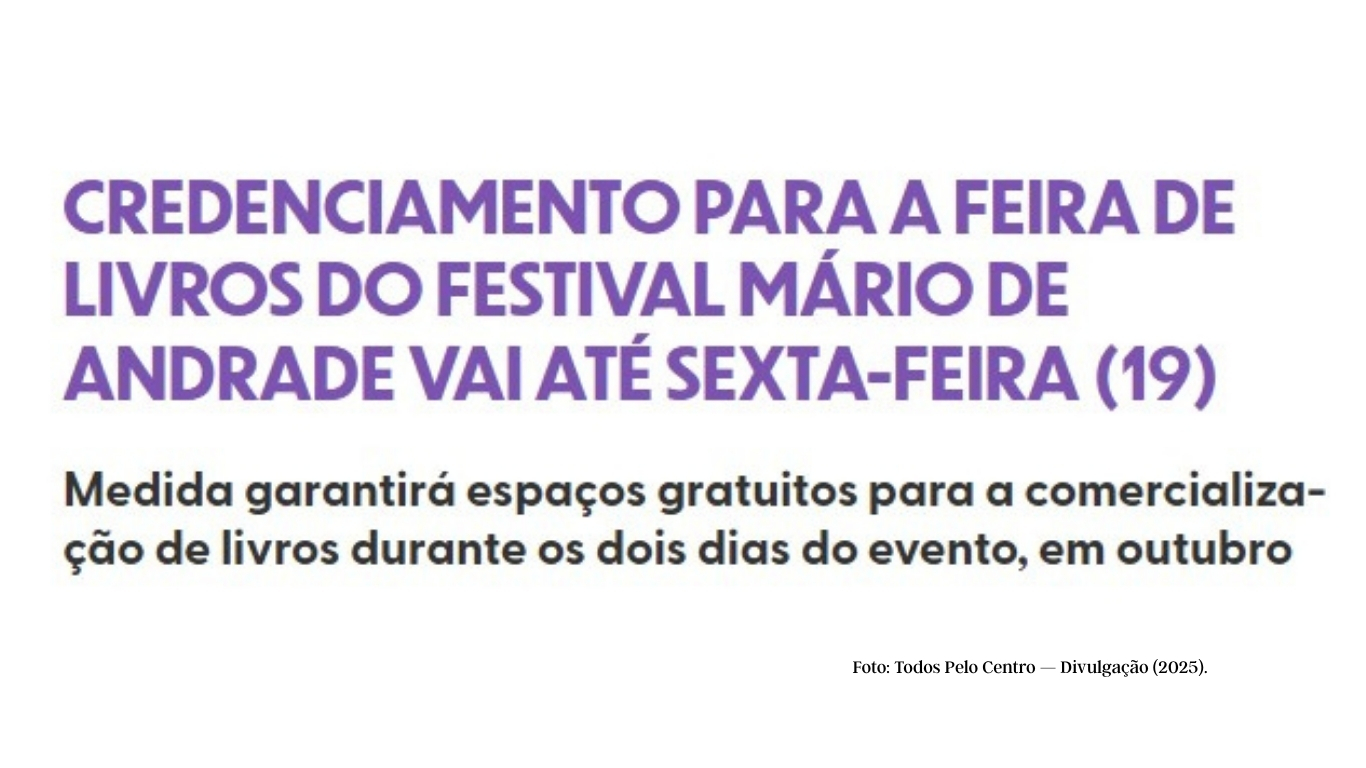 - Todos Pelo Centro — “Credenciamento para a Feira de Livros…” (15/09/2025): https://todospelocentro.prefeitura.sp.gov.br/noticias/credenciamento-para-a-feira-de-livros-do-festival-mario-de-andrade-vai-ate-sexta-feira-19